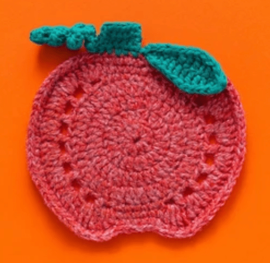 Repeat this pattern around the coaster. Once completed, join with a slip stitch and fasten off the orange yarn.